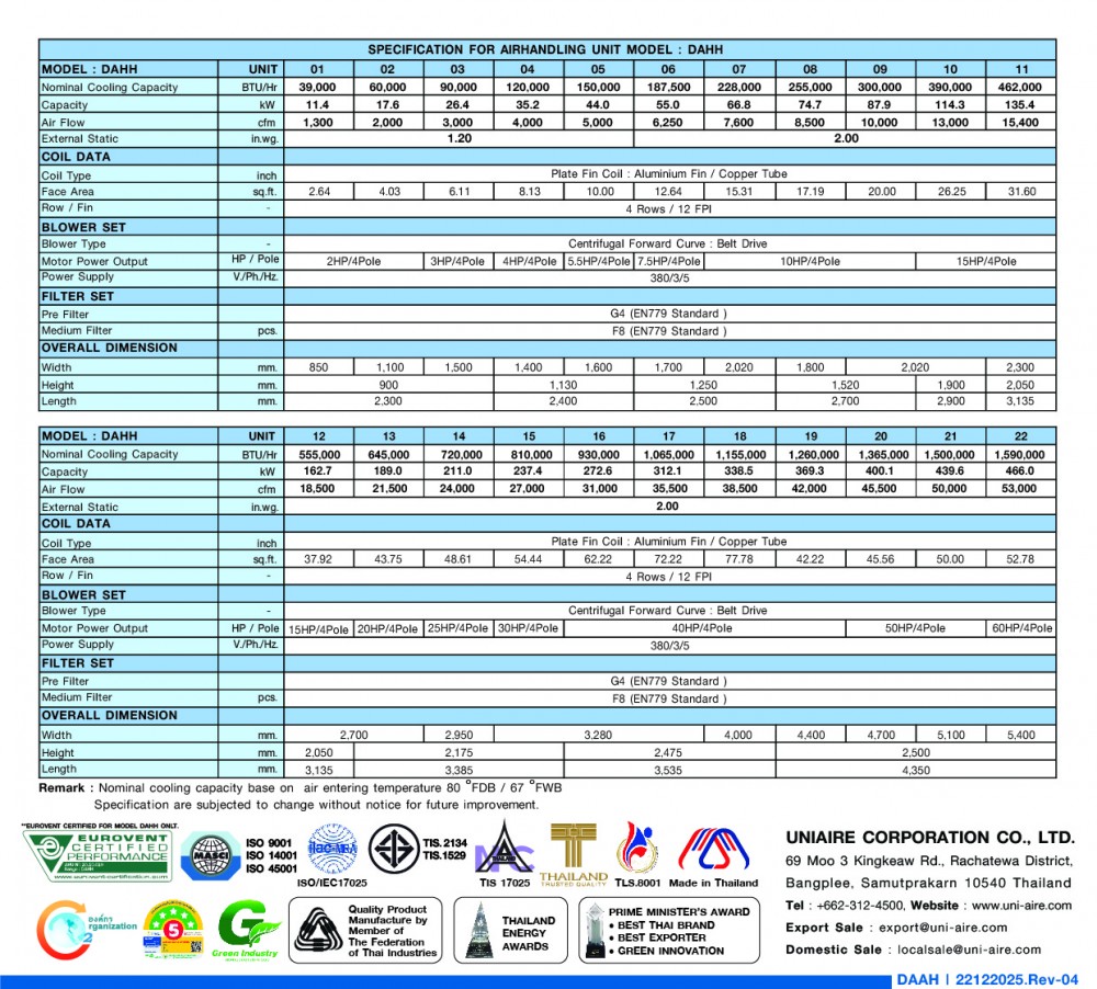 Qualified of the performance of Air-Conditioning product and the grading according to European "Eurovent Certification"