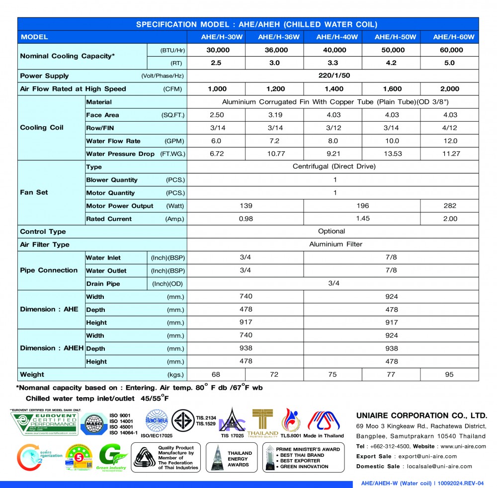 Commercial/Chilled-water Fan Coil UnitDucted type (AHU)