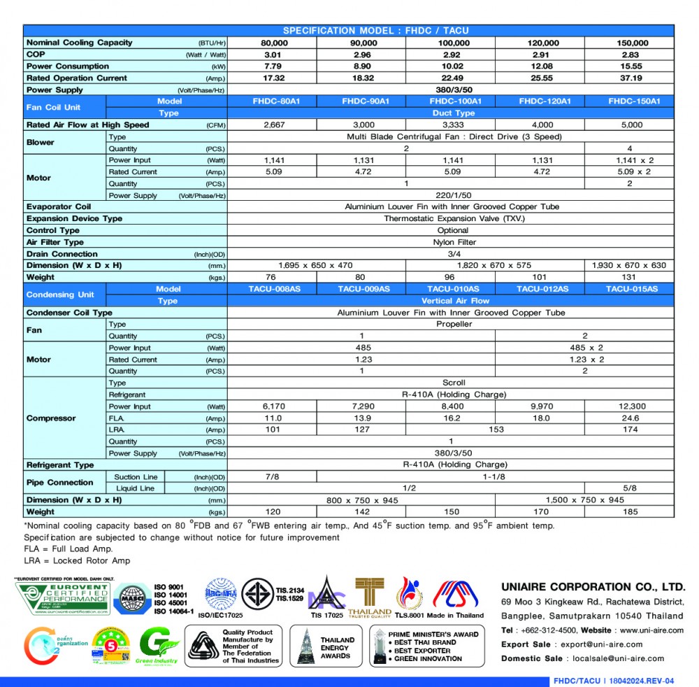 ขนาดความเย็น 80,000-150,000 BTU/H